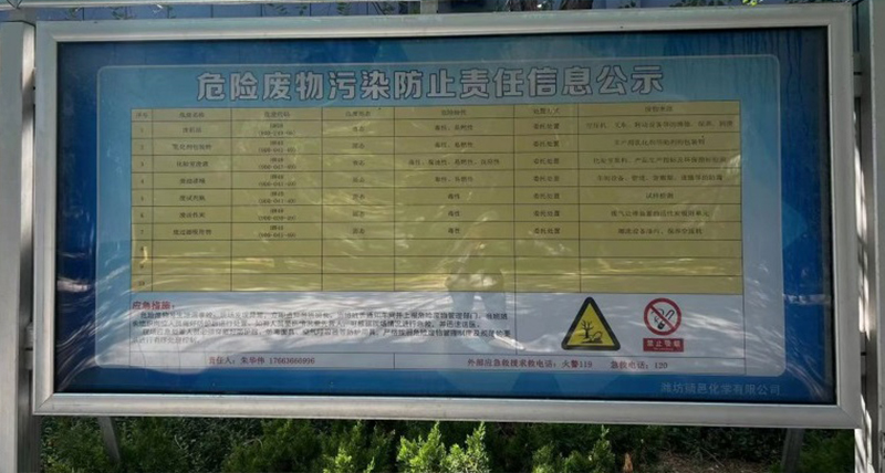 我濰坊碩邑化學(xué)有限公司現(xiàn)有危險(xiǎn)廢物六種,分別為廢活性炭(HW49 900-039-49)、乳化劑等助劑包裝物(HW49 900-041-49)、油漆桶.稀釋劑包裝物(HW49 900-041-49)、廢試劑瓶(HW49 900-041-49)、化驗(yàn)室廢液(HW49 900-047-49)、廢機(jī)油(HW08 900-249-08)。